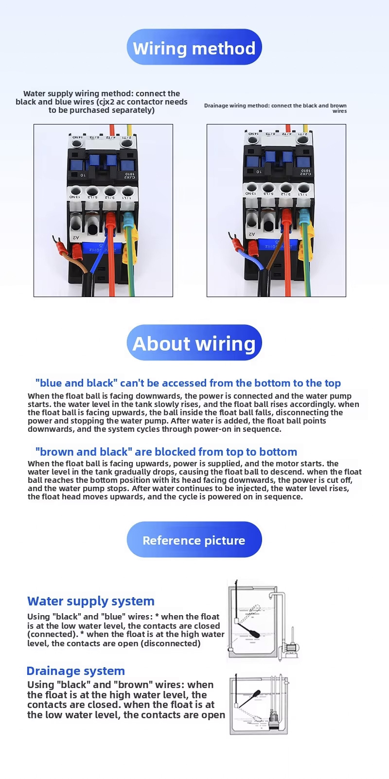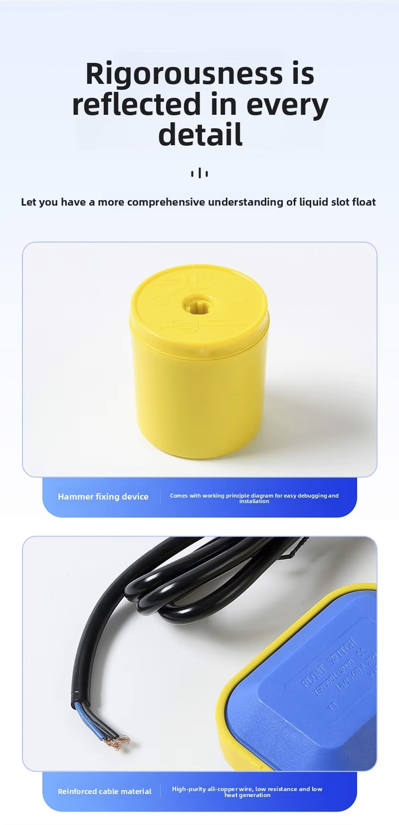 ขอบเขตการควบคุมระดับของเหลวสามารถปรับได้ตามต้องการโดยให้ชิ้นส่วนระบุตำแหน่งเลื่อนขึ้นและลง ต้องใช้สกรูเพียงตัวเดียวเท่านั้น