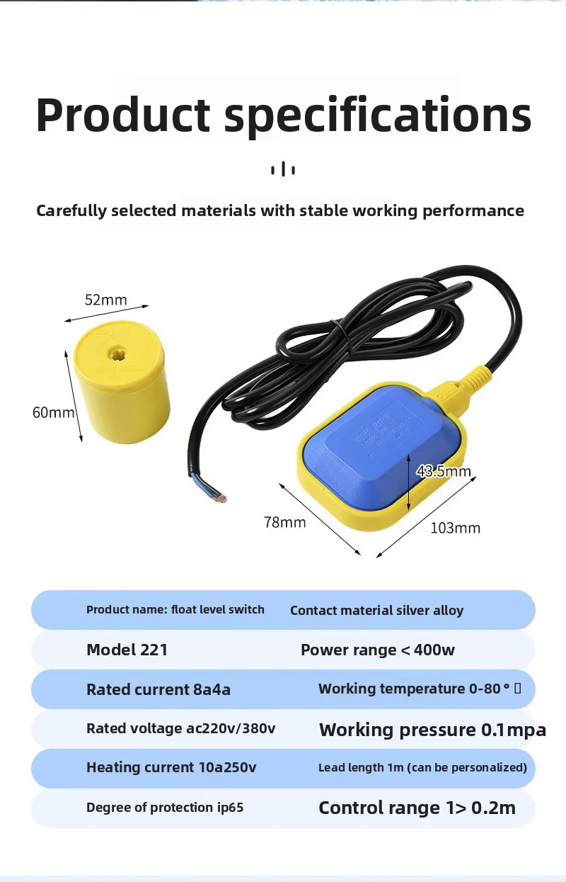 M15-3 220V ถังน้ำพลาสติก Flow SWITCH สวิทช์ควบคุมระดับลอยอัตโนมัติสวิทช์ลอยสำหรับบ่อน้ำปั๊มน้ำเซ็นเซอร์ระดับ.
